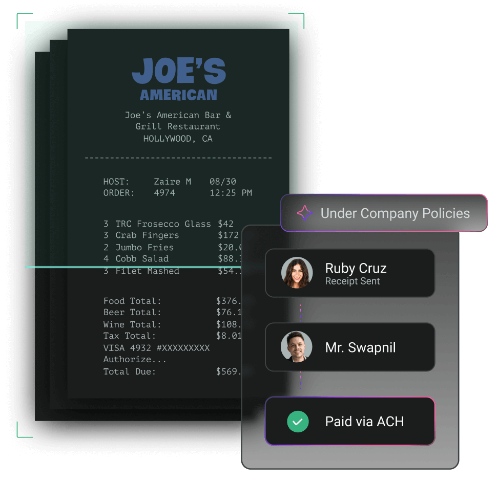 - Receipt Scanning: Auto-capture receipts with smart scanning technology to save time and ensure accuracy, so you can say goodbye to manual data entry.